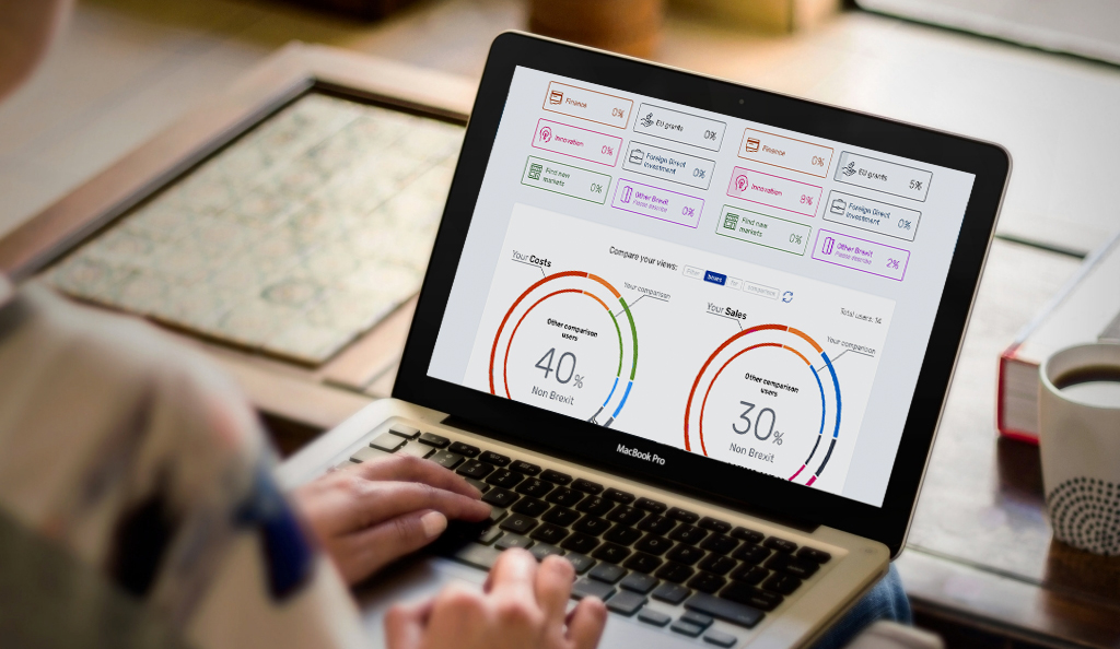 Businesses told us that they were struggling to get uniform data and content on Brexit. Coverage was extensive, but not directly useful. And business directors told us they wanted to compare their views on Brexit and the impacts on their business against their peers. So we built The Brexit Tracker.